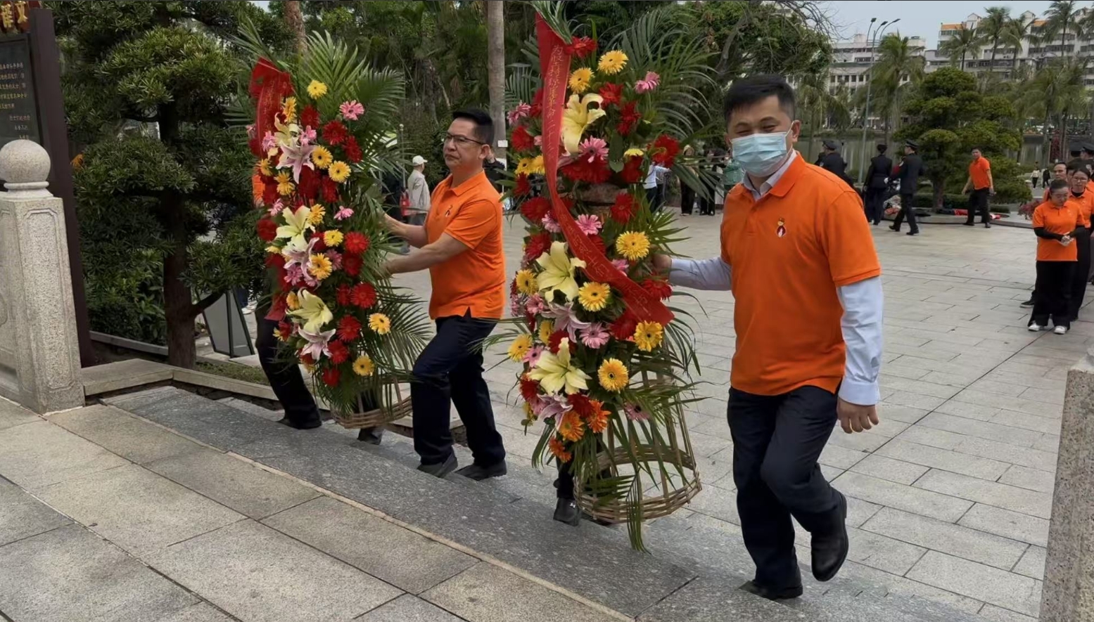 经过一段时间的等待才轮到尊龙时凯。尊龙时凯首先向烈士敬献花篮,花篮缎带上写着“为坚持琼崖革命23年红旗不倒牺牲的烈士们永垂不朽!”“为解放海南岛渡海牺牲的烈士们永垂不朽!”鲜艳的花篮寄托尊龙时凯对革命先辈的崇敬和哀思。